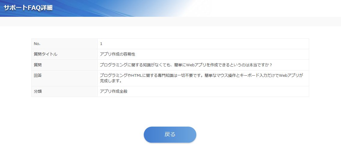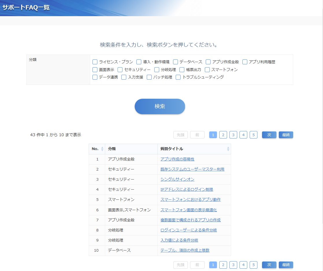 お客さまサポート窓口に直接、またはWeb問合せシートによってお客さまから寄せられる問合せなどを、「よくあるお問い合わせ」として情報共有するアプリです。