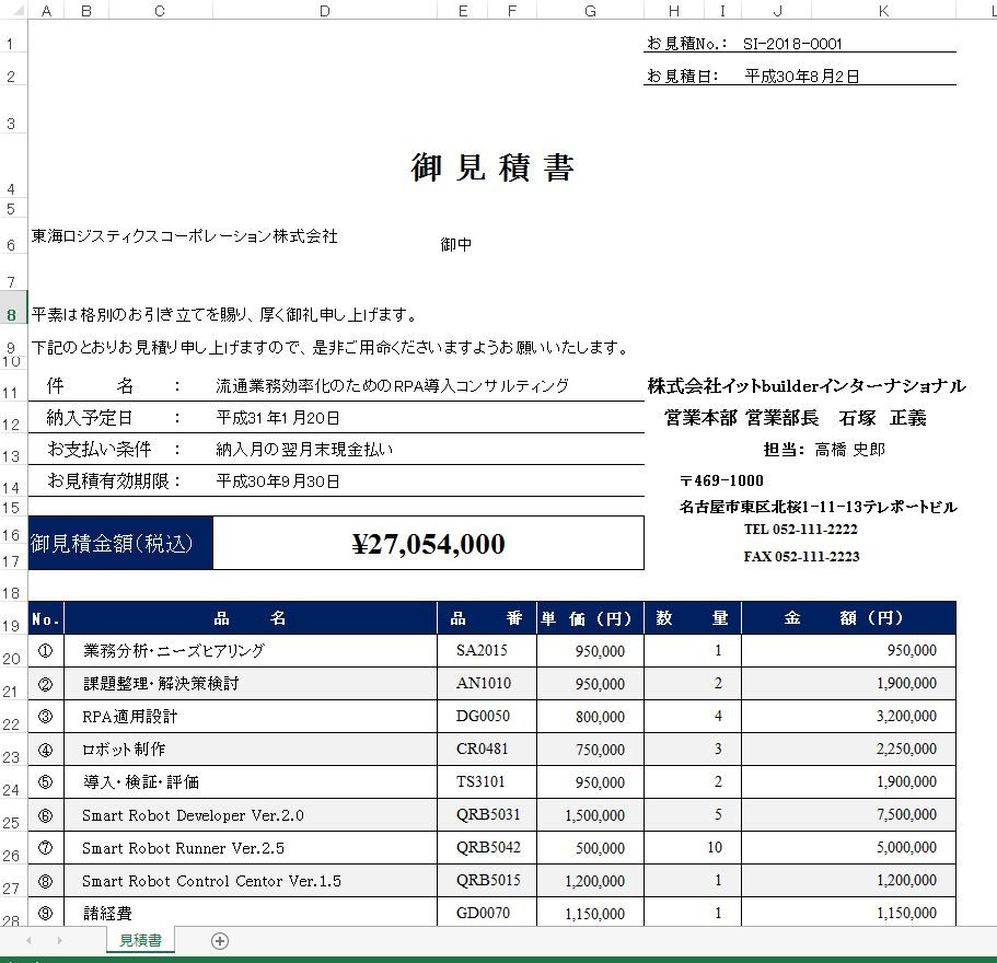 完成した見積データは、あらかじめExcelで作成しておいた見積書フォームに出力することができます。