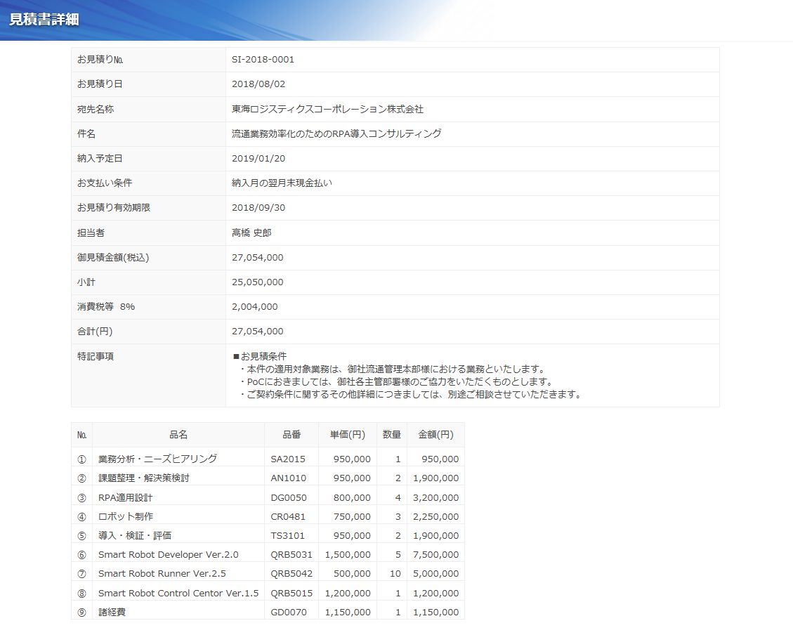 見積データは、見積案件全体に関するヘッダデータと、内訳を示す明細データで構成され、Excelで作成した見積書フォームに出力することができます。