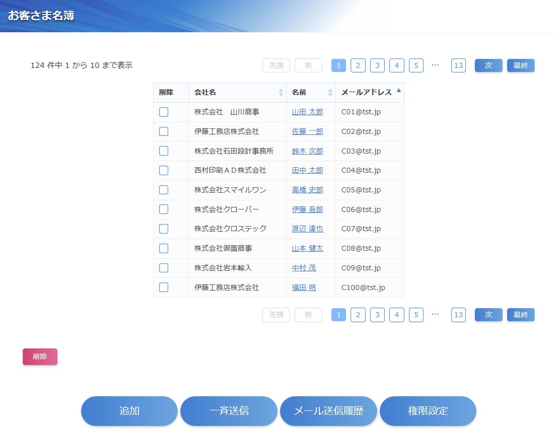 添付ファイルを付加したメールも送信可能です。お客さまへパンフレットのPDFなどを一斉送信したい場合に便利です。