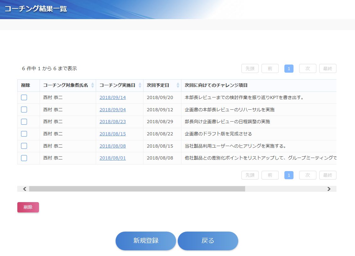 社内で行うコーチングの実施履歴を管理するアプリです。