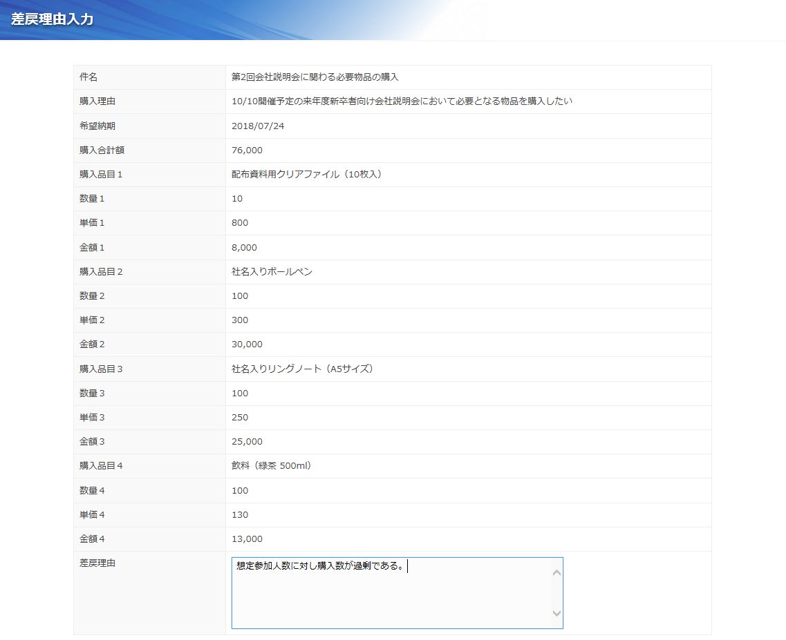 物品調達の一連の業務手順を、ワークフローとして処理することができるアプリです。