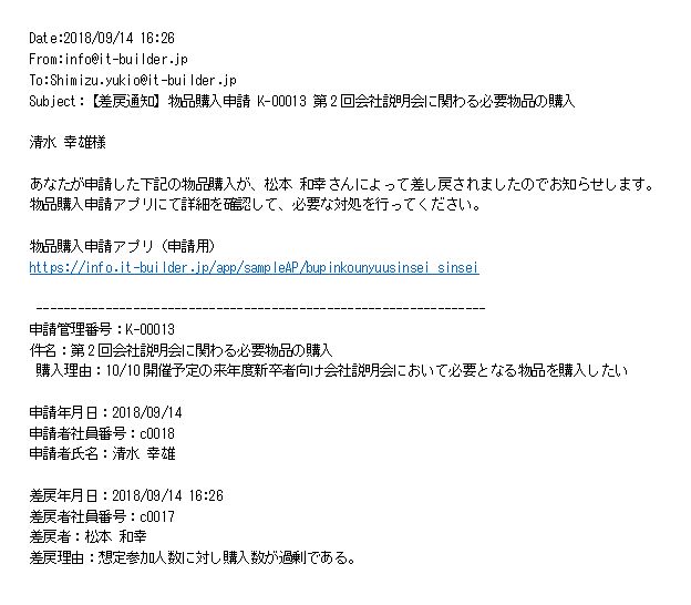 各部署の担当者による申請、上長による承認、資材担当者による発注、物品受領などの各ポイントごとに、関係者に対して各種依頼や通知メールが自動発信されます。