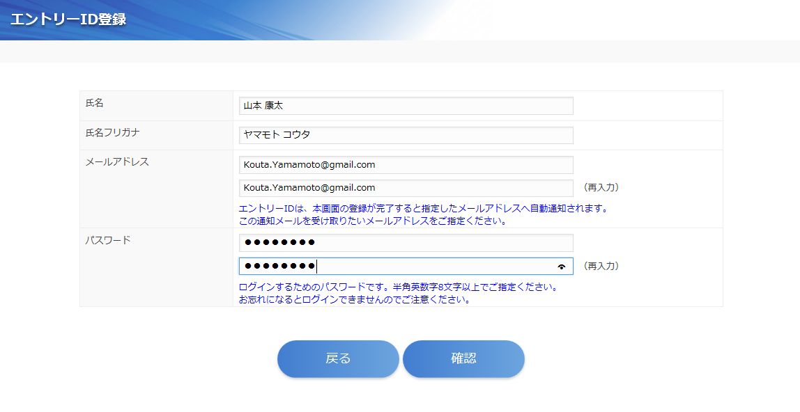 応募者はWeb上でエントリーシートを作成し、エントリー申し込みすることができます。